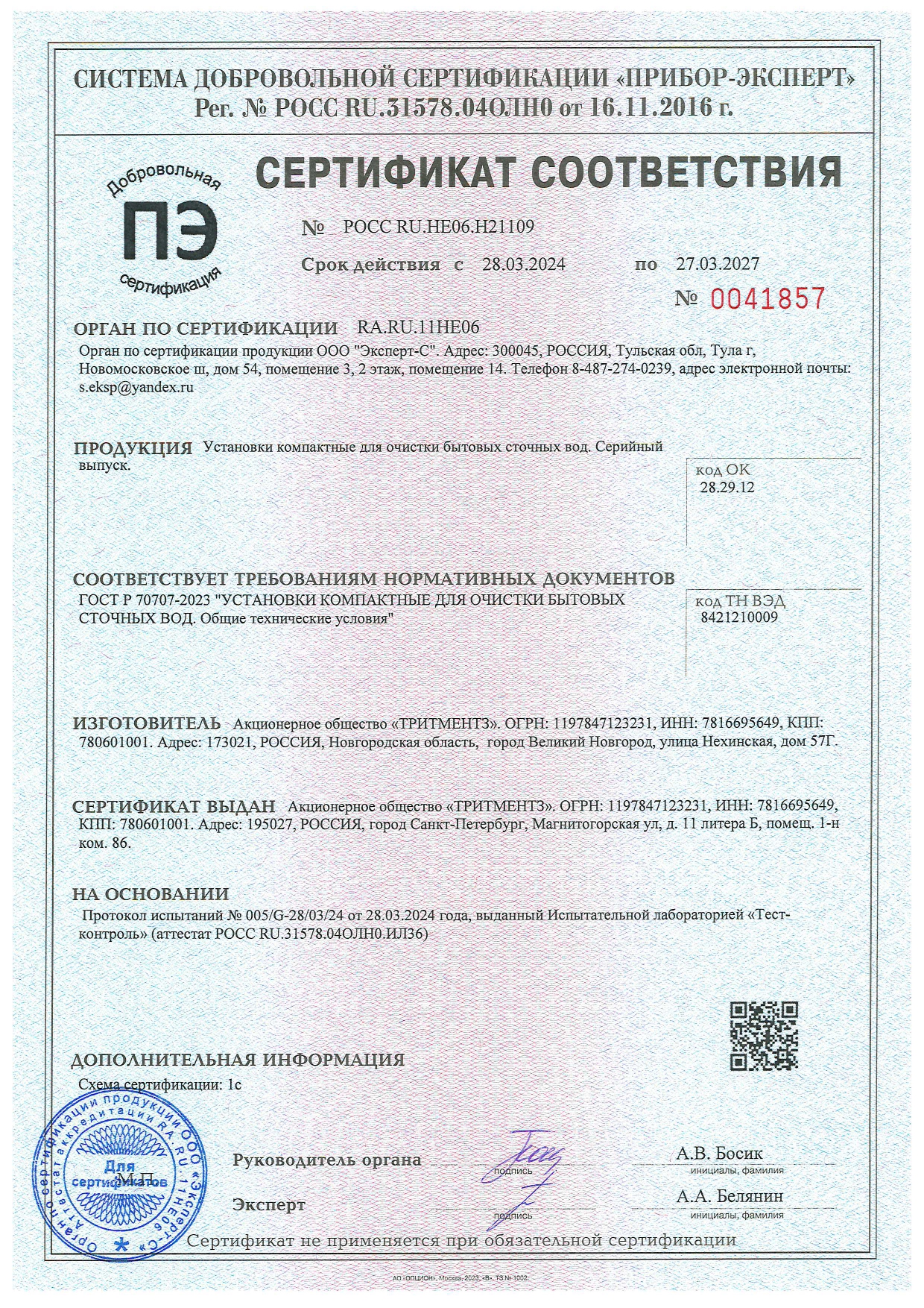• Соответствие параметров количества и качества стоков на входе в установку.