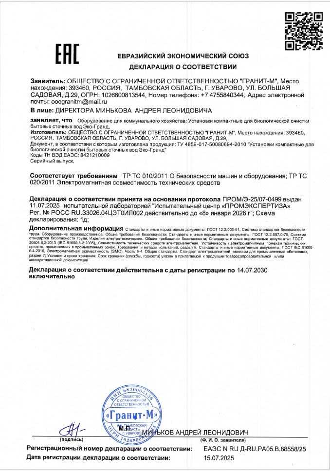 Гарантийный срок на корпус септика из полипропилена – 5 лет.